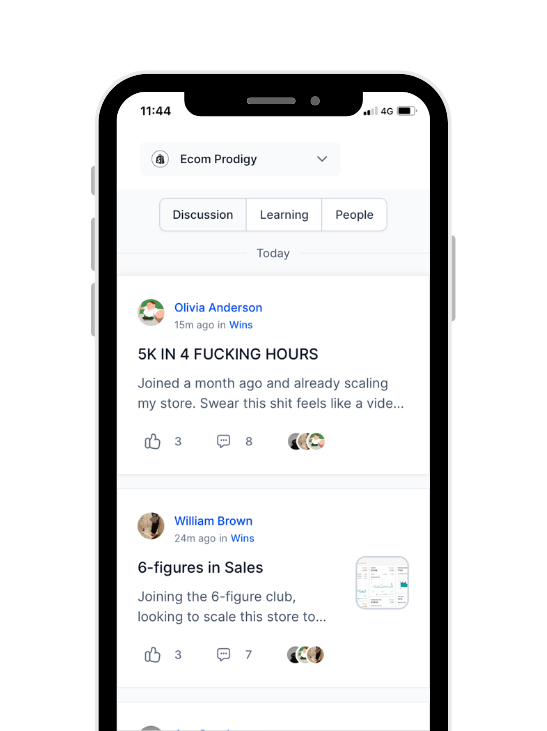 In our dedicated dropshipping mastermind group, you'll connect with peers embarking on their dropshipping journey at the same time as you, offering a unique opportunity to progress together. This community is enriched by experienced dropshippers who have already navigated the path you're on, ready to guide and inspire.
